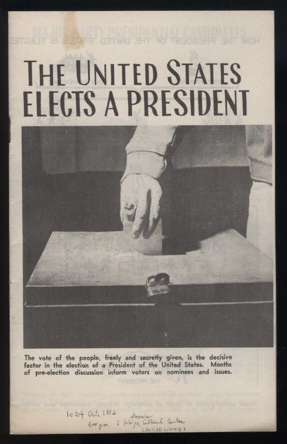 - アメリカ合衆国大統領選挙の方法 1952年 UNITED STATES INFORMATION SERVICE発行 1冊 ELECTS A PRESIDENT :米大統領選 アイゼンハワー