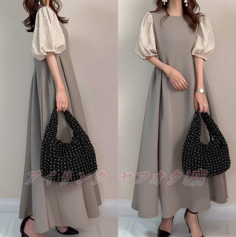 - ☆新品オシャレ ワンピース ロングワンピース ふんわり袖 半袖 着痩せ 大きいサイズ Aラインワンピース きれいめ かわいい