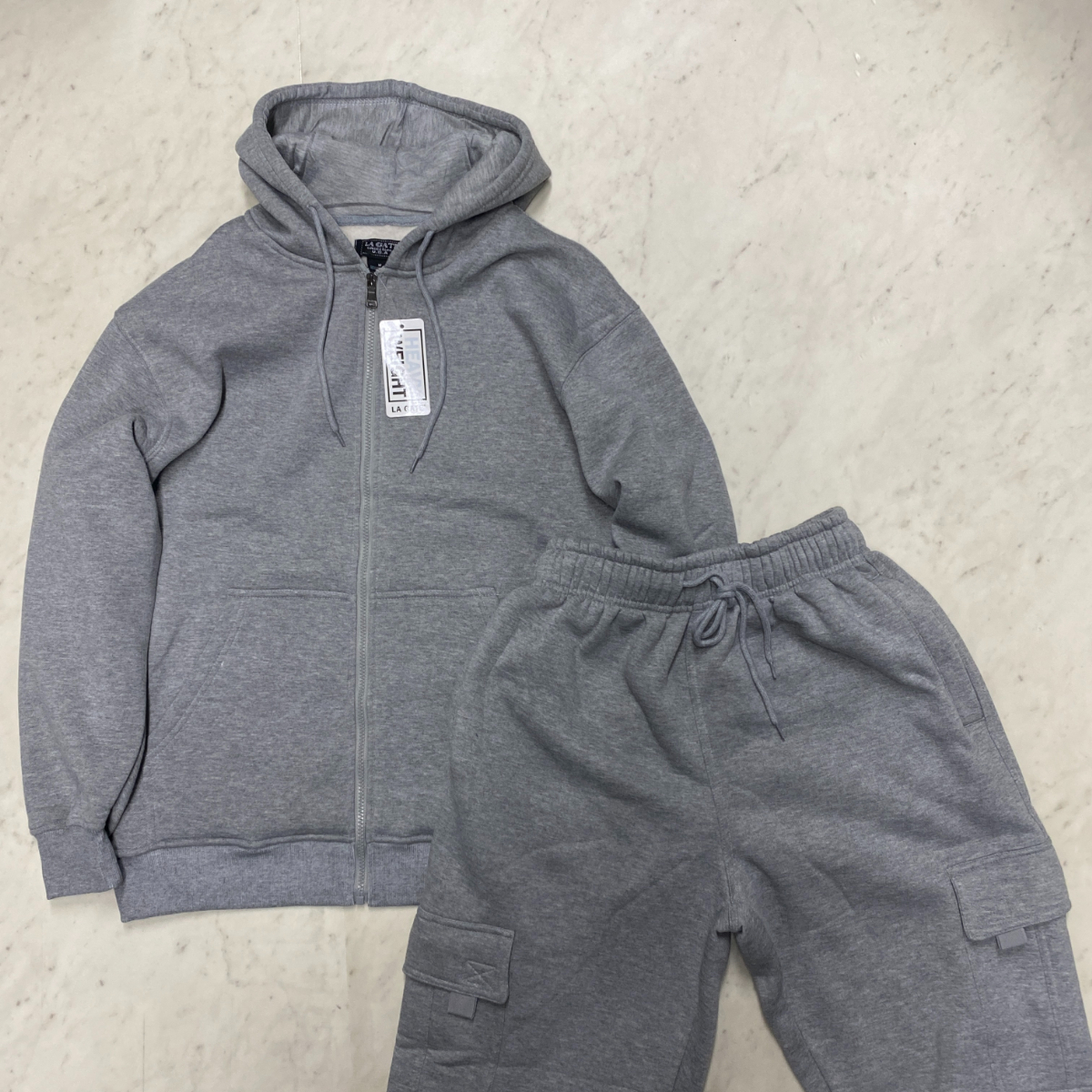 > 米国老舗ブランド【XL】 LA Gate エルエーゲート 肉厚 ヘビーウェイト ジップアップ カーゴ 無地 スウェットセットアップ グレー USA正規品