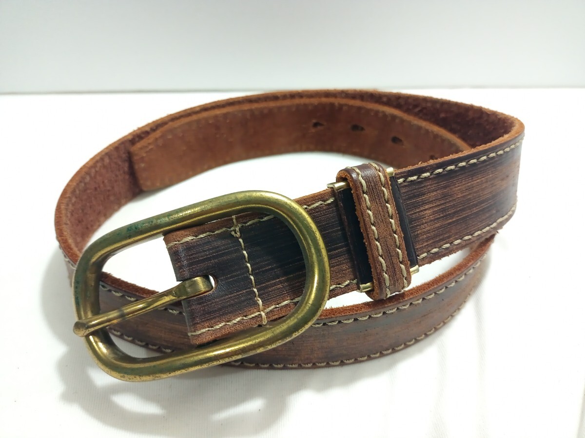 - 一枚革ベルト ダメージ加工 ウエスト75cm~85cm 34mm幅 こげ茶色