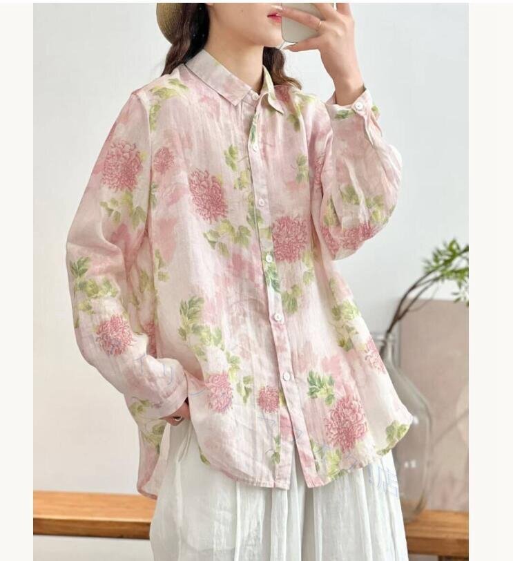 - ☆新品レディースシャツ 春夏 リネンシャツ 長袖 カーディガン シャツジャケット トップス ブラウス 綿麻シャツ アウター F