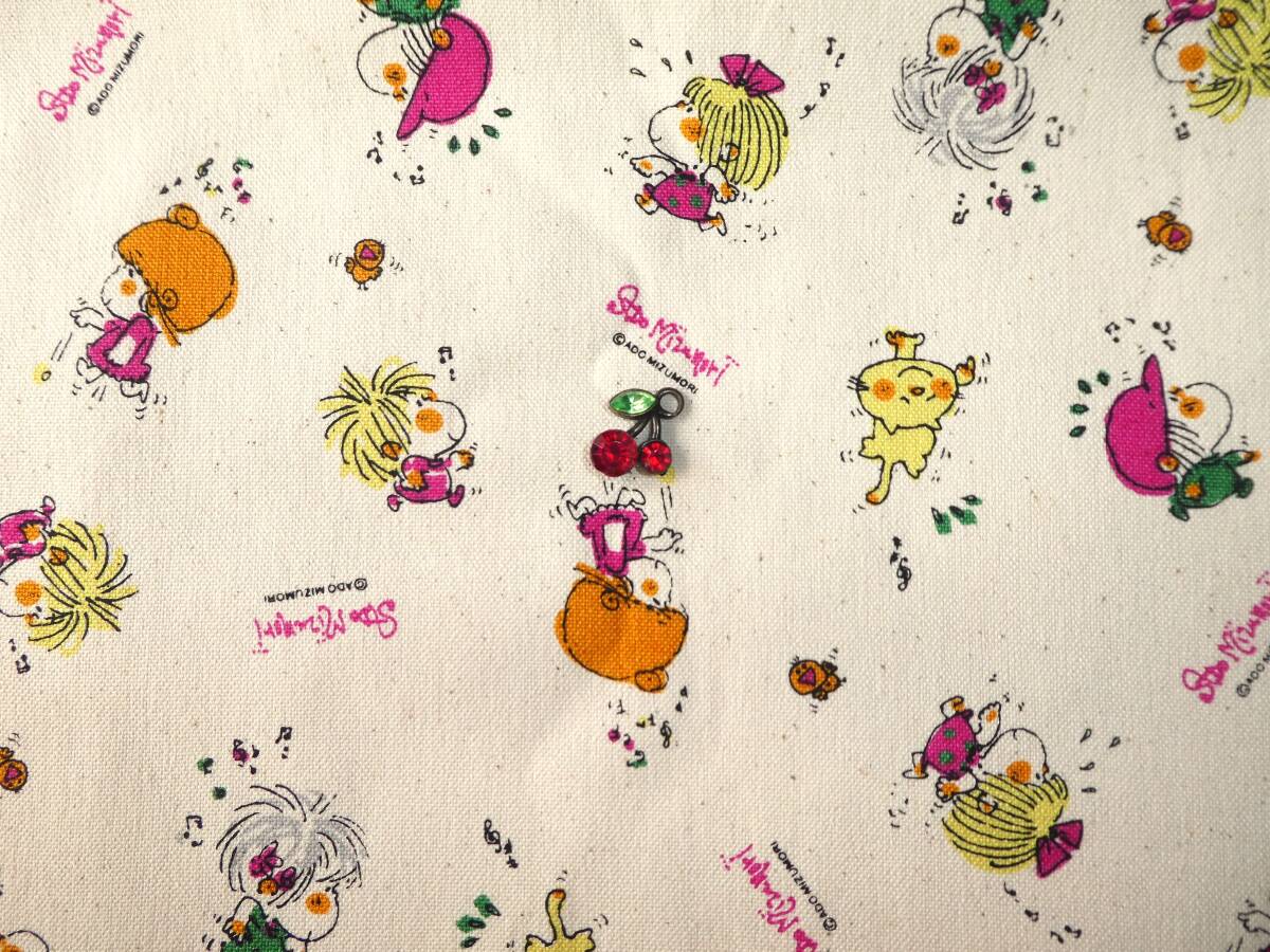 - 即決★レア 水森亜土子どもネコ小鳥柄生地帆布★レトロ昭和カントリーアニマル