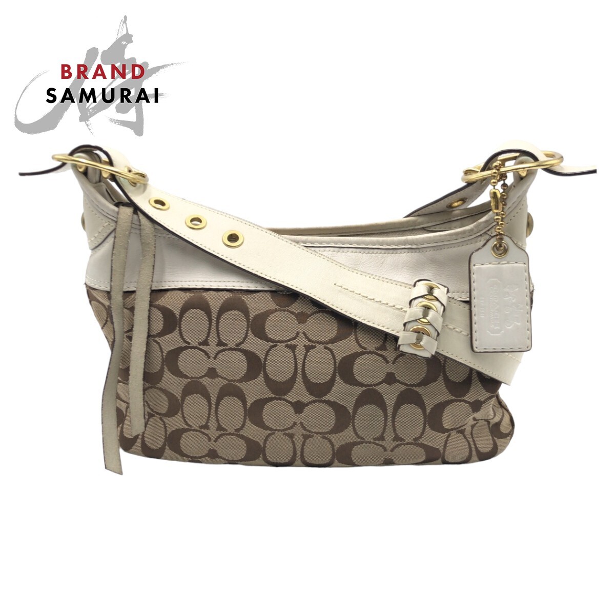 - 美品 COACH コーチ シグネチャー ブラウン ホワイト ゴールド金具 キャンバス F11444 ショルダーバッグ 斜め掛け可能 レディース 405051