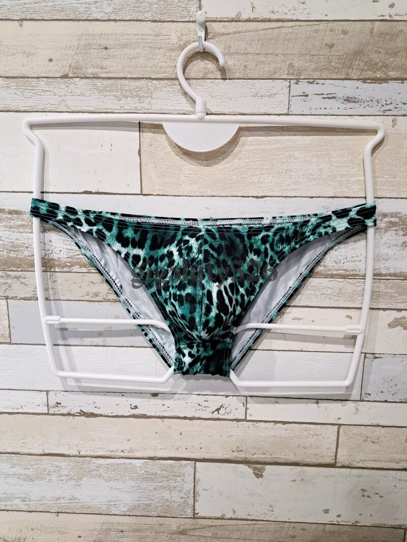 > 【送料無料】メンズ 豹柄プリントブリーフ - セクシーで通気性があり快適、大きなポーチ(カラー:グリーン豹柄/サイズ:XL)
