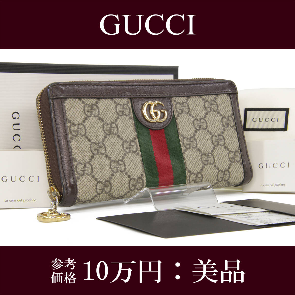- 本物 送料無料 グッチ 長財布 ラウンドファスナー メンズ レディース オフィディア 茶色 シェリーライン GGロゴ 現行モデル 人気 綺麗 H049