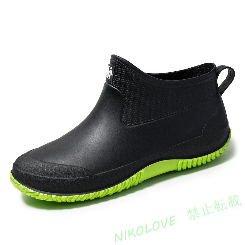 - 完全防水 おしゃれ レインブーツ 長靴 メンズ レインシューズ 靴 シュート丈 23.0cm~27.0cm 黒*緑 AB126