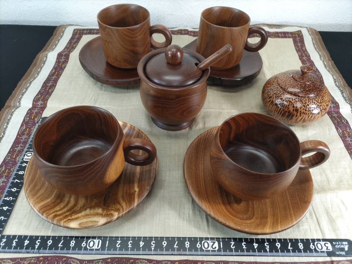 - ■送料無料!■まとめて■カップ&ソーサー■シュガーポット■木製■銘木■天然木■銘木・エンジュ■10点セット(A2)!