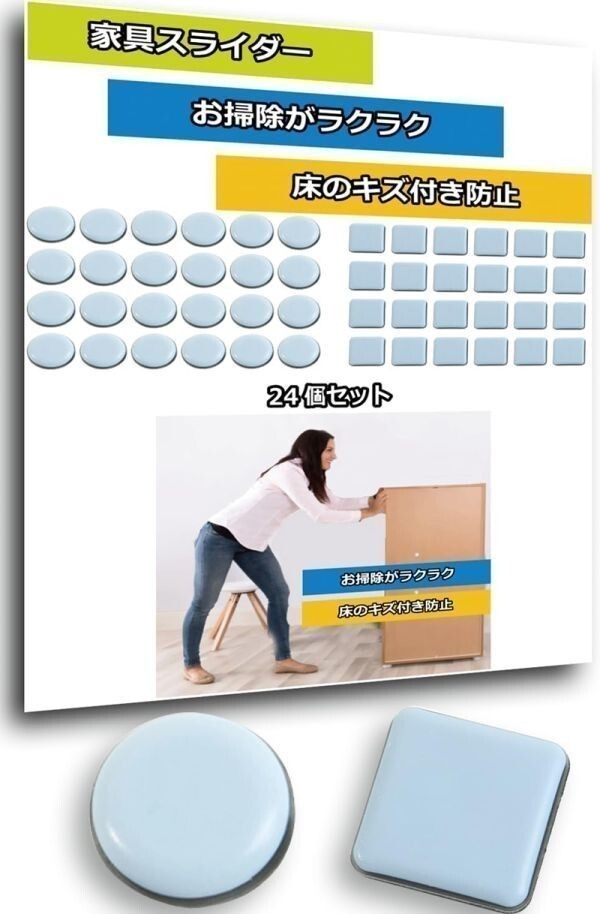 > 【 送料無料 】Freell ◆ 家具スライダー 24個セット( 四角形22mm )◆家具を滑らせやすくしてお掃除、移動がラクラク 家具の移動∞