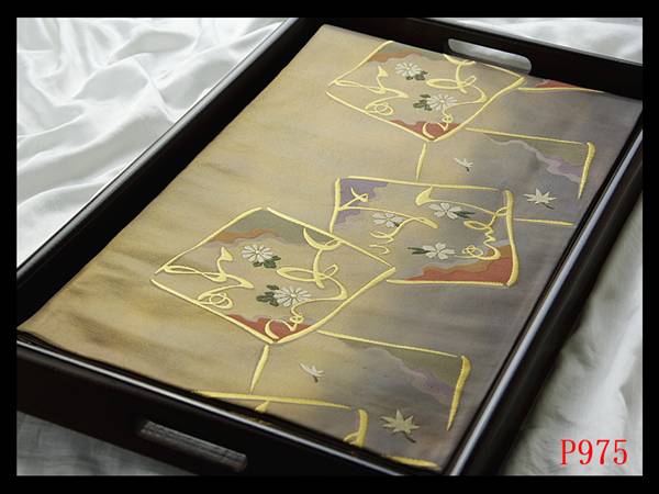 - P975西陣逸品 振袖可 色紙散らし紋 鳩羽鼠色地 気品豊かに 正絹純金糸六通高級美術袋帯 ◇検◇簪着物名古屋帯帯締め