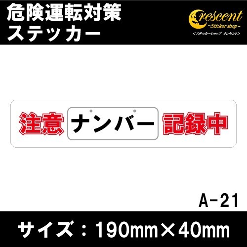 - 追突防止 危険運転 対策 ステッカー ドライブレコーダー A-21 ナンバー 記録中 妨害運転 煽り 前後方向 録画中 記録中 rec シール デカール