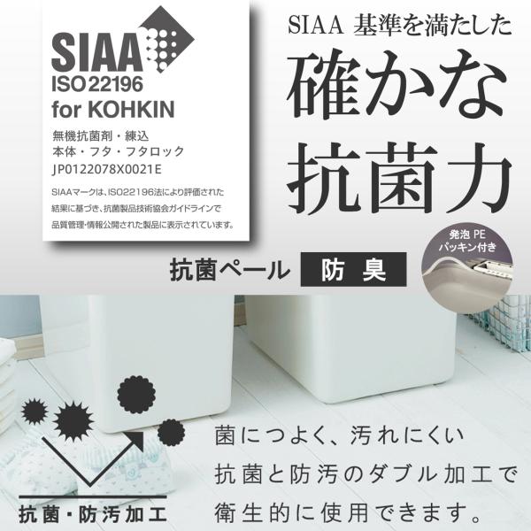 > 47L 抗菌ペール 防臭 ダストボックス ホワイト ゴミ箱 四角 フタ付 おしゃれ 北 日本製 AZ-RSD-75WH