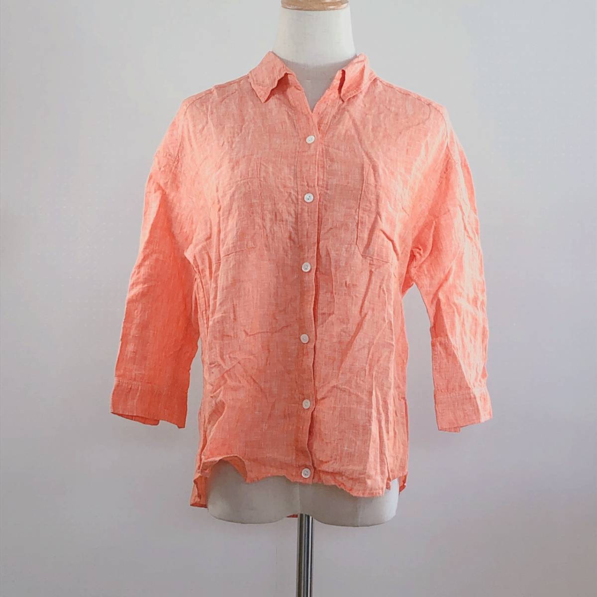 - YZ0167 美品 FREDY&GLOSTER レディーストップスシャツ長袖薄手 胸ポケット サイズ36 レッド 赤 麻100% シンプル カジュアル おしゃれ 春秋