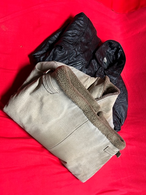 > ◇メンズ用【革ジャン LEATHER/MARQEES STREET 1.5㎏×ムートン MOUTON/SEAHOP 1.3㎏ 2枚組】リメイク素材にも。P11050