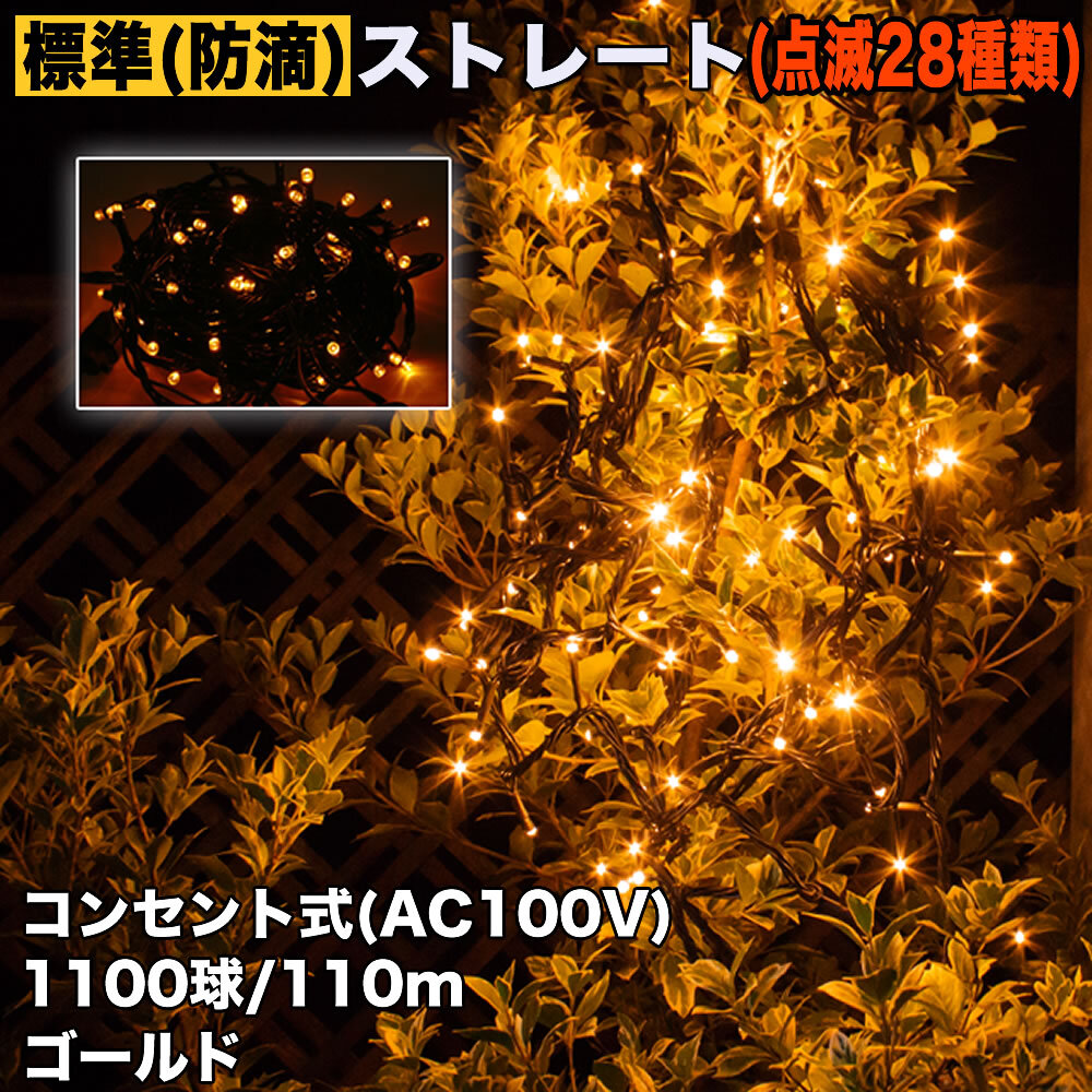 > クリスマス 防滴 イルミネーション ストレート ライト 電飾 LED 1100球 110m ゴールド 28種点滅 Bコントローラセット