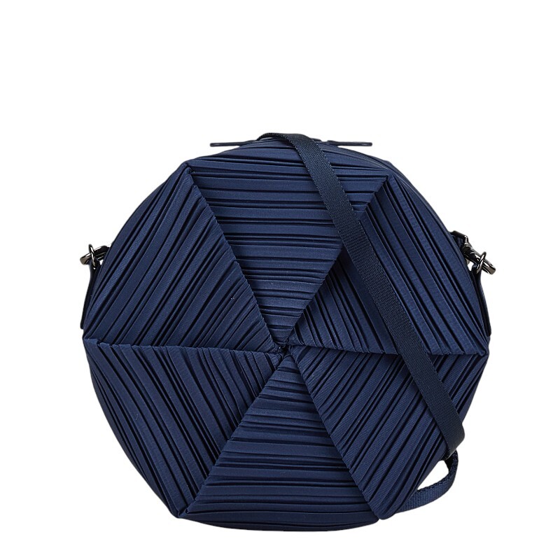 - イッセイミヤケ プリーツプリーズ フローズンフラワー 斜め掛け ショルダーバッグ ネイビー ポリエステル ISSEY MIYAKE 【中古】