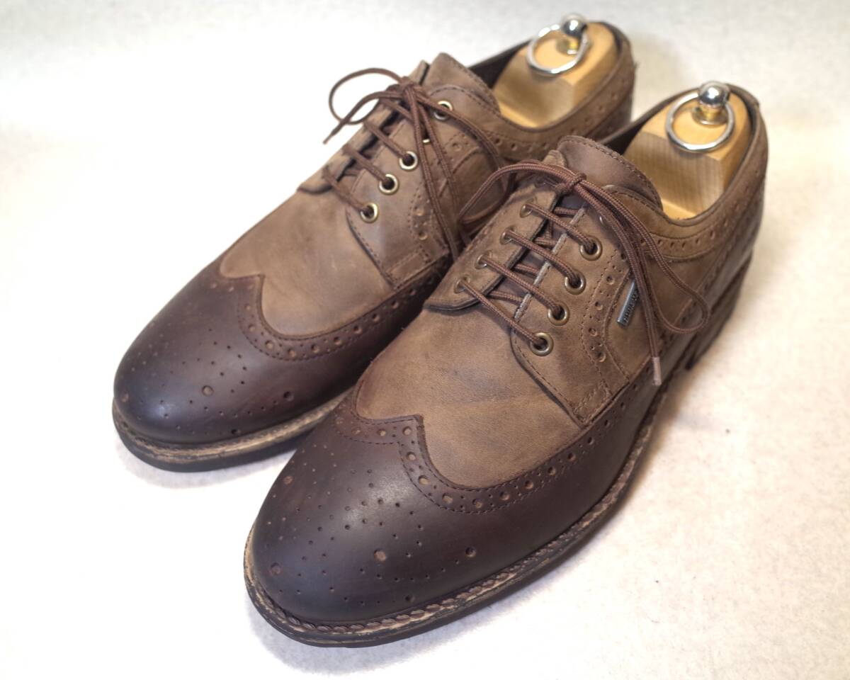 2トーンコンビレザーアッパー 外羽根5アイレット ロングウイングチップ。
