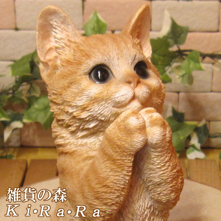 - 置物 動物 可愛い 猫の置物 リアル お願いキャット 1 チャトラ ネコ フィギュア 子ねこ オブジェ ガーデニング