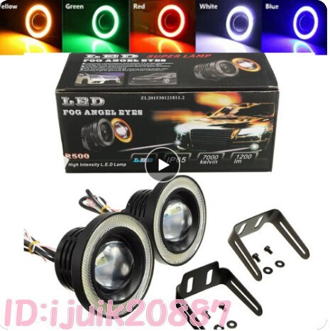 > My1199: 2個 セット 車 LED フォグランプ ライト ヘッドライト デイライト 自動車 バイク ヘッドランプ エンジェルアイ 青黄白赤色 ランプ
