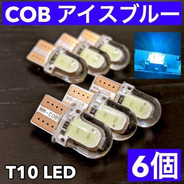 - アイスブルー6個☆T10 LED COB 4チップ 全面発光 シリコンヘッド