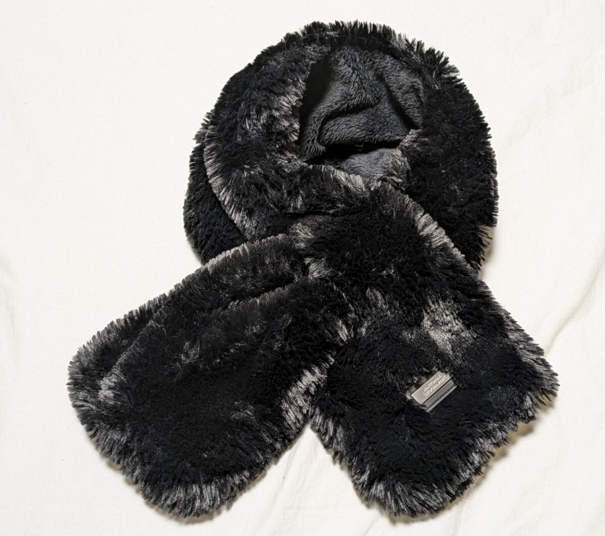 - 2800送料200円 ナショナルジオグラフィック NATIONAL GEOGRAPHIC マフラー ストール フェイク ファー 黒 ブラック 通し穴