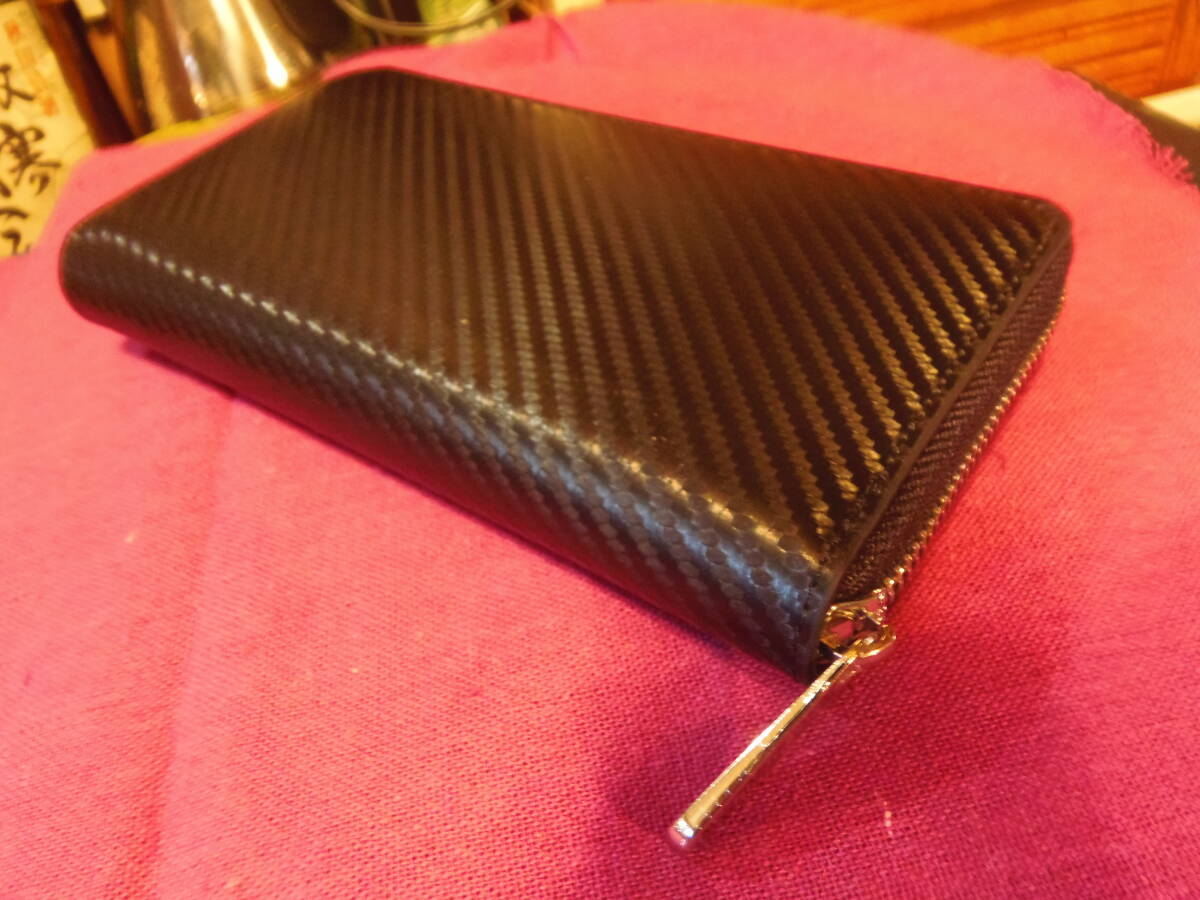 - 長財布 カーボンレザー 黒、青 ラウンドファスナー財布 ロングウォレット 牛革 メンズ カード8枚収納 送料無料です。