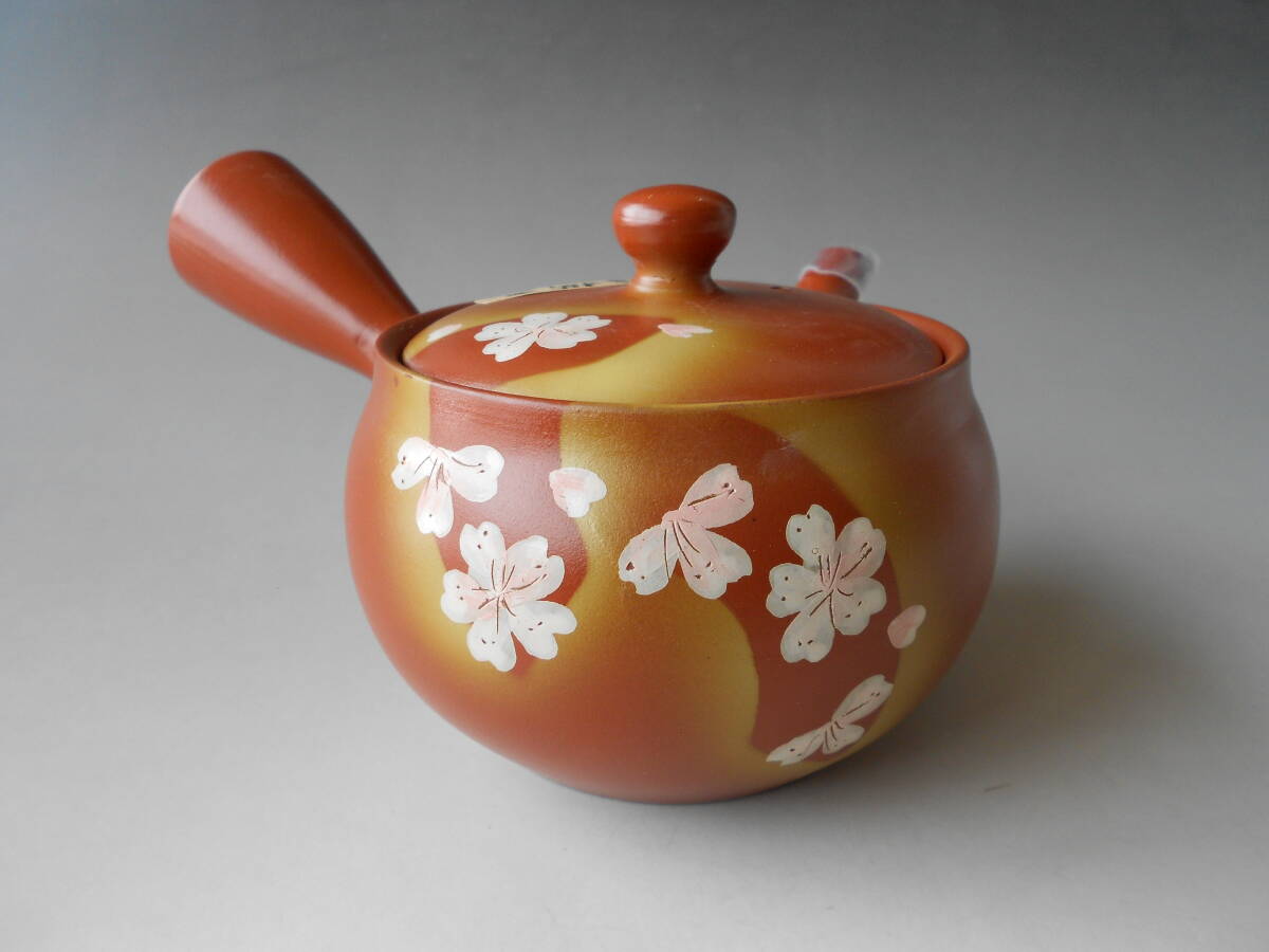 - 茶器! ☆手描き朱泥扇面さくら急須☆ Y814 新品 紅茶 カップ ポット お茶 煎茶 ギフト