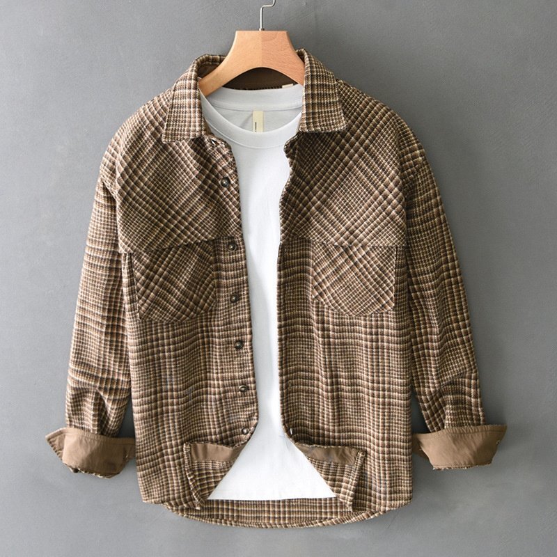 - ☆新品 シャツジャケット 長袖シャツ シャツ ウール混ん チェック 春秋冬 メンズ ウエスタンシャツ トップス 珈琲色 XL