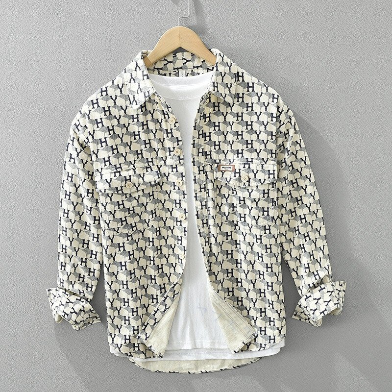 - ☆新品 長袖シャツ メンズ シャツジャケット カジュアルシャツ 総柄 トップス 春秋服 色 サイズ選択可 白系 M