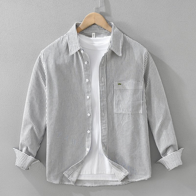 - ☆新品 シャツジャケット 長袖シャツ ヴィンテージ ストライプ 春秋 メンズ カジュアル ブラウス トップス 白 L