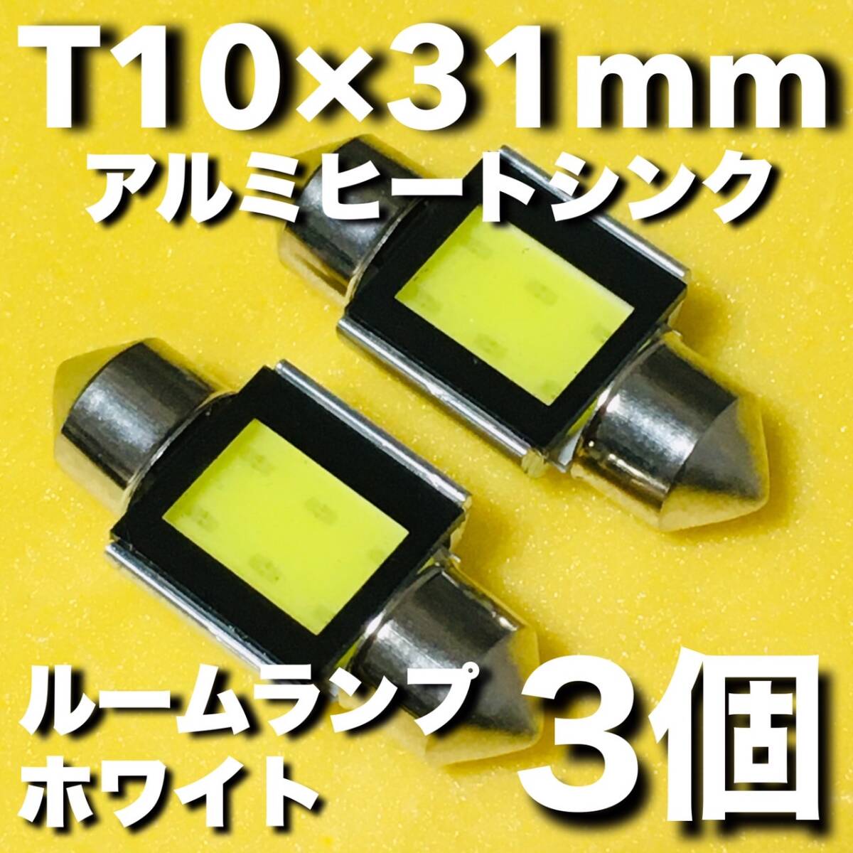 > T10 LED 31mm COB 全面発光 ルームランプ 室内灯 アルミヒートシンク搭載 ホワイト パーツ ライト 車検対応 3個set