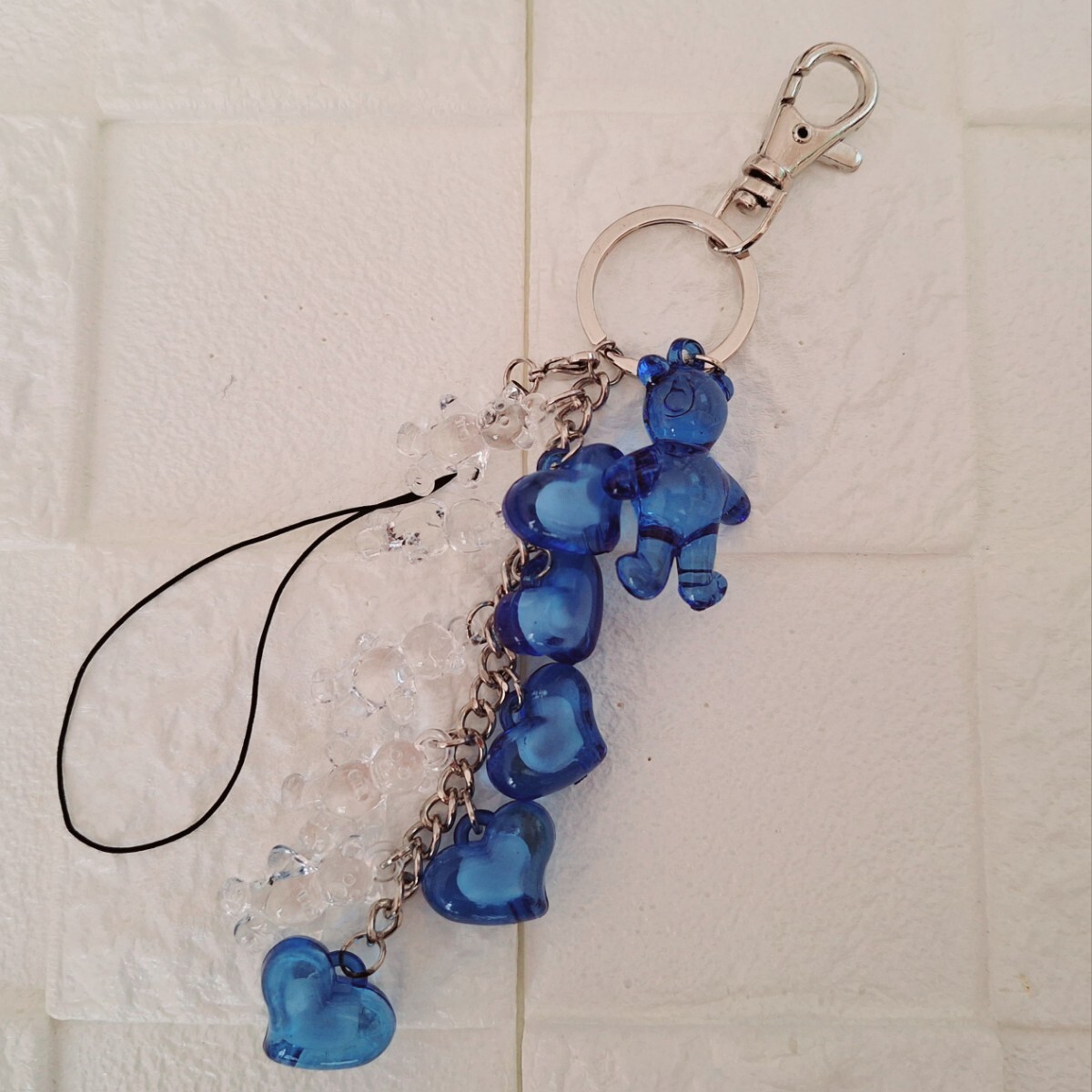 - ◆未使用◆キーチャーム◆クマ&ハート◆ブルー×クリア◆ストラップつき◆