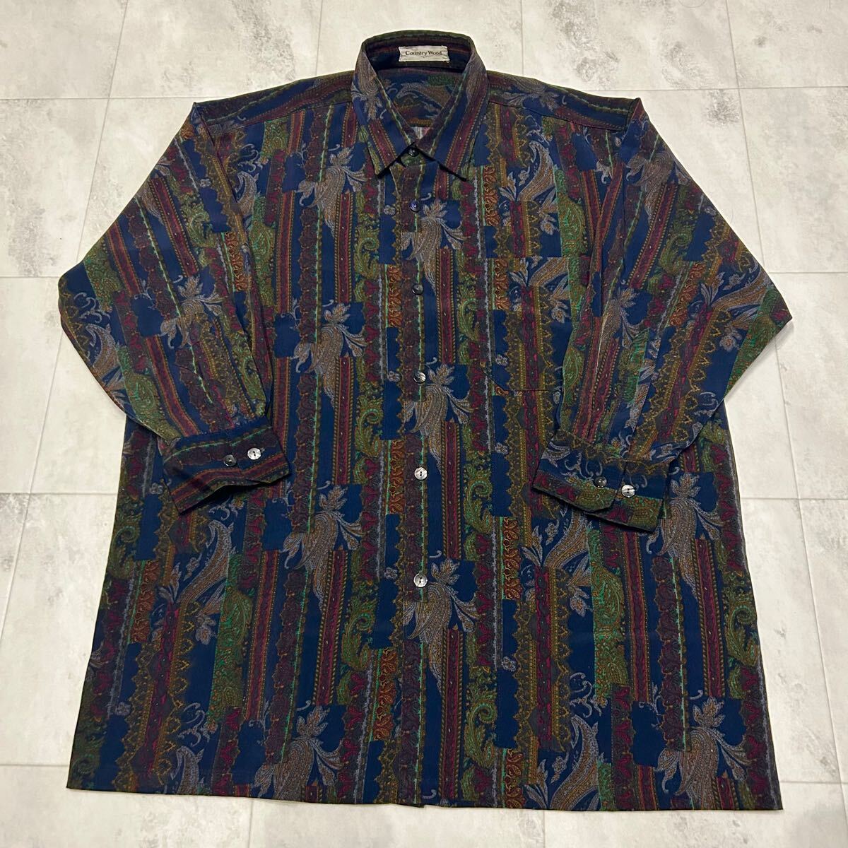 > Country Wood 総柄 柄シャツ ペイズリー 和柄 レトロ アート ビンテージ 七部 長袖シャツ ポリエステル100%