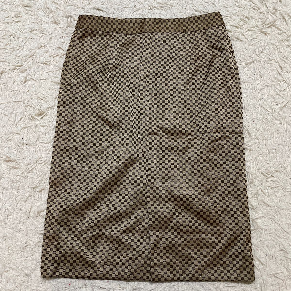 > NATURAL BEAUTY ナチュラルビューティー【M】レディース タイト 膝丈スカート チェック柄 ブラウン系 レーヨン50% 送料無料