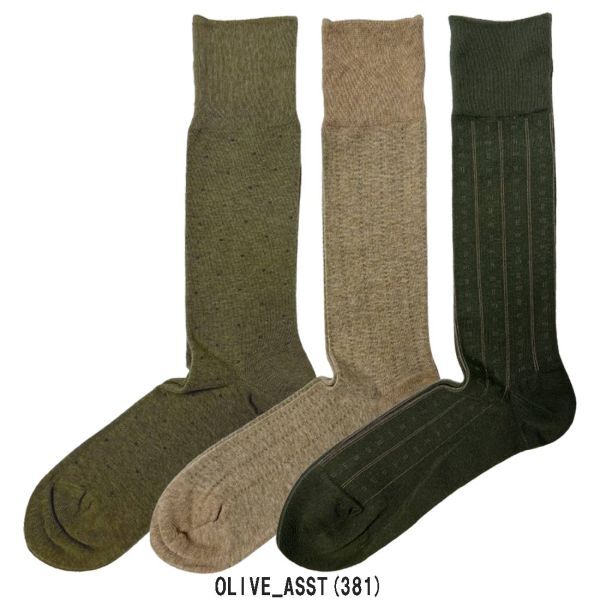 > ※訳あり アウトレット POLO RALPH LAUREN(ポロ ラルフローレン)メンズ ビジネス ソックス 3足セット 男性用靴下 8089PK OLIVE_ASST(381)