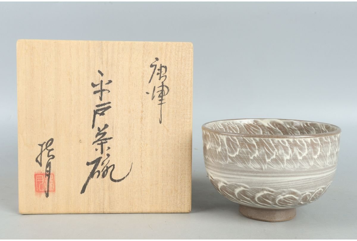 - [ギャラ藤]唐津焼/指月庵/清水滋雄 造/唐津平戸茶碗/共箱/B-1000 (検索)骨董/茶器/茶碗/急須/茶托/置物/茶道具/割烹/抹茶碗
