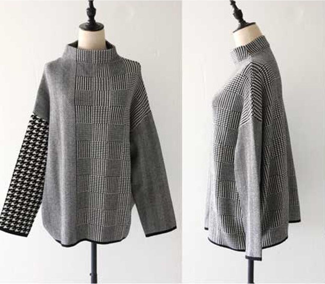 - 新品*上品 ニット セーター レディース トップス 秋 冬 セーター ハイネック 長袖 千鳥格柄 切り替え プルオーバー ニットセーター 通勤