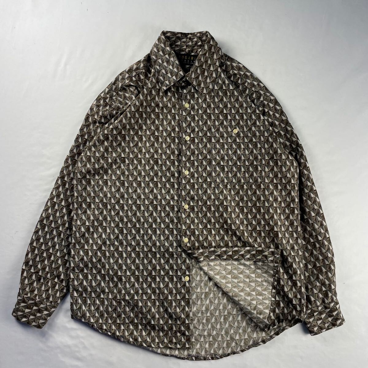 - Euro Vintage 90-00s BOGARi ポリエステル くすみカラー 装飾 オーナメント アート エッシャー 幾何学模様 総柄 デザインシャツ ポリシャツ