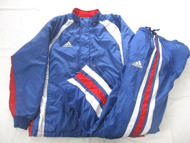 > adidasアディダス トリコロールカラー中綿ウォームアップジャケット+パンツ 上下セットアップXO