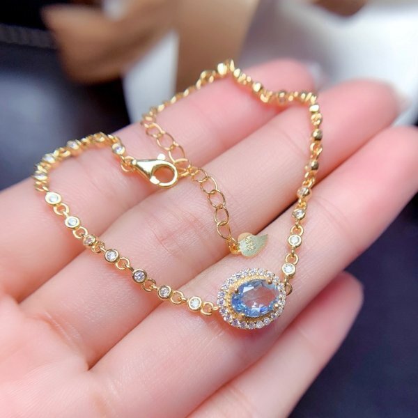 > 【証明書付き】女性用ナチュラルトパーズブレスレット、 4×6mm、925スターリングシルバー、最初の入札者様は開始価格で購入可能