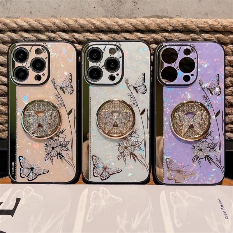 > iPhone 16 ケース アイフォン16 保護カバー 6.1インチ スマートフォンカバー アクリルケース 蝶リング付き ストーン シリコン おしゃれ
