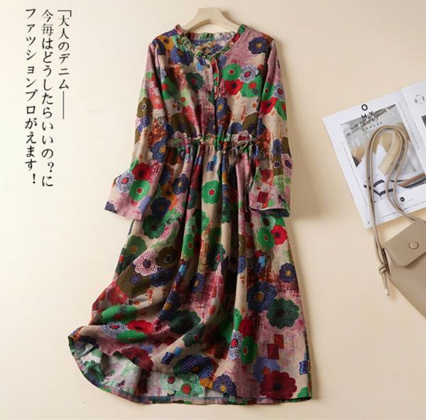 - 秋冬美品*ロングワンピース シャツワンピース レディース ミモレ丈 長袖 大人 プリント柄 大きいサイズ 着痩せ オフィス 通勤 *花柄