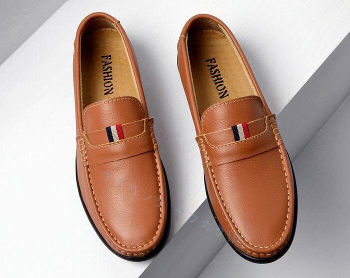 > ☆新品ローファー スリッポン 本革 レザーシューズ メンズ 革靴 ドライビングシューズ ビジネス 軽量防滑牛革 ライトブラウン W38~W44