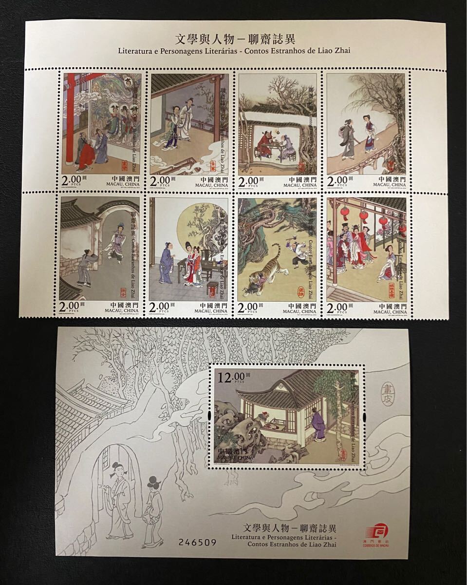 - 中国マカオ 聊斎志異 8種完 小型シート1種完 未使用 NH
