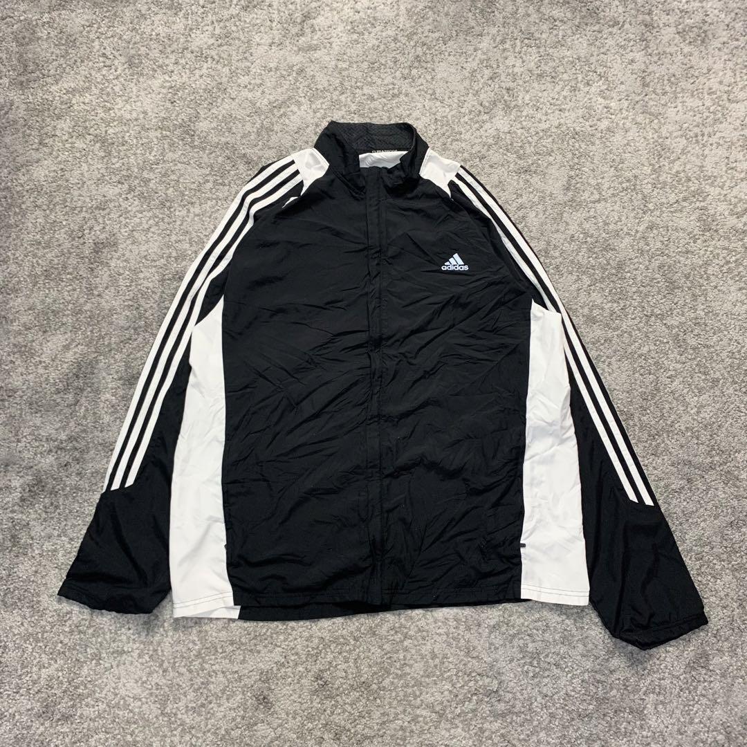 - XL相当 アディダス ナイロンジャケット 黒 白 古着