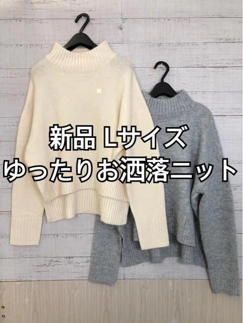 - 新品☆L♪グレー×アイボリー系♪ふんわりお洒落ニットを2枚セットで♪☆p545