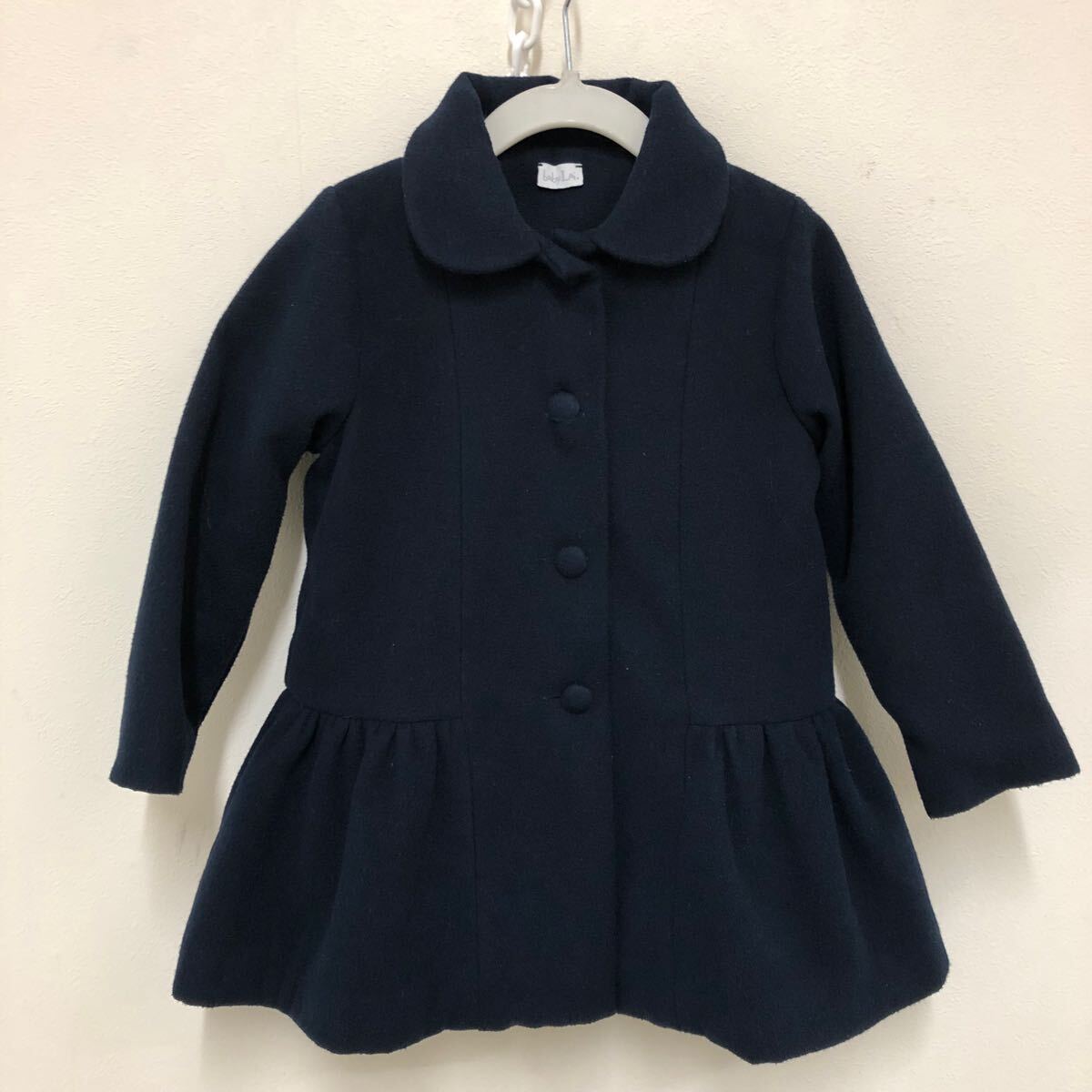 - (23)baby Lai コート 丸襟 3A 100㎝位 ネイビー 紺 くるみボタン