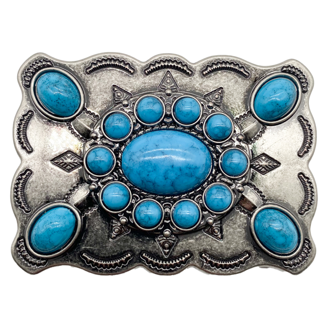 > ■新品/送料無料■ ベルトバックルのみ メンズ レディース 交換可能 金具 かっこいい ターコイズ系 ターコイズスクエア 銀シルバー