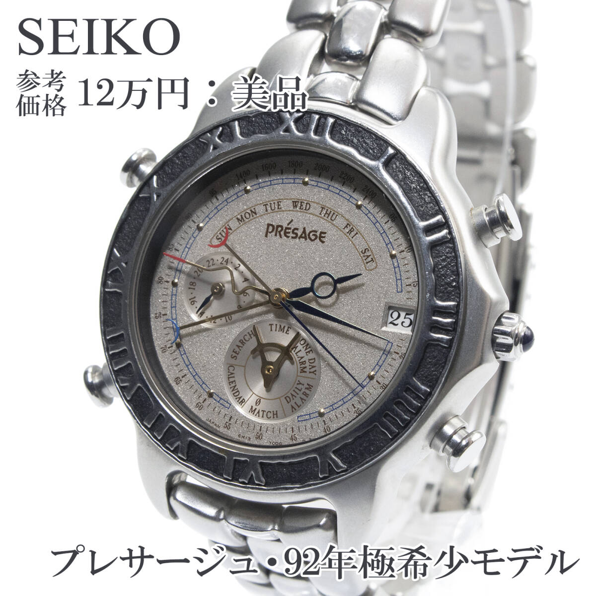 > 送料無料 セイコー 腕時計 PRESAGE プレサージュ 6M13-7000 シルバー グレー メンズ 92年ヴィンテージ 多機能 永久カレンダー 珍しい Q014