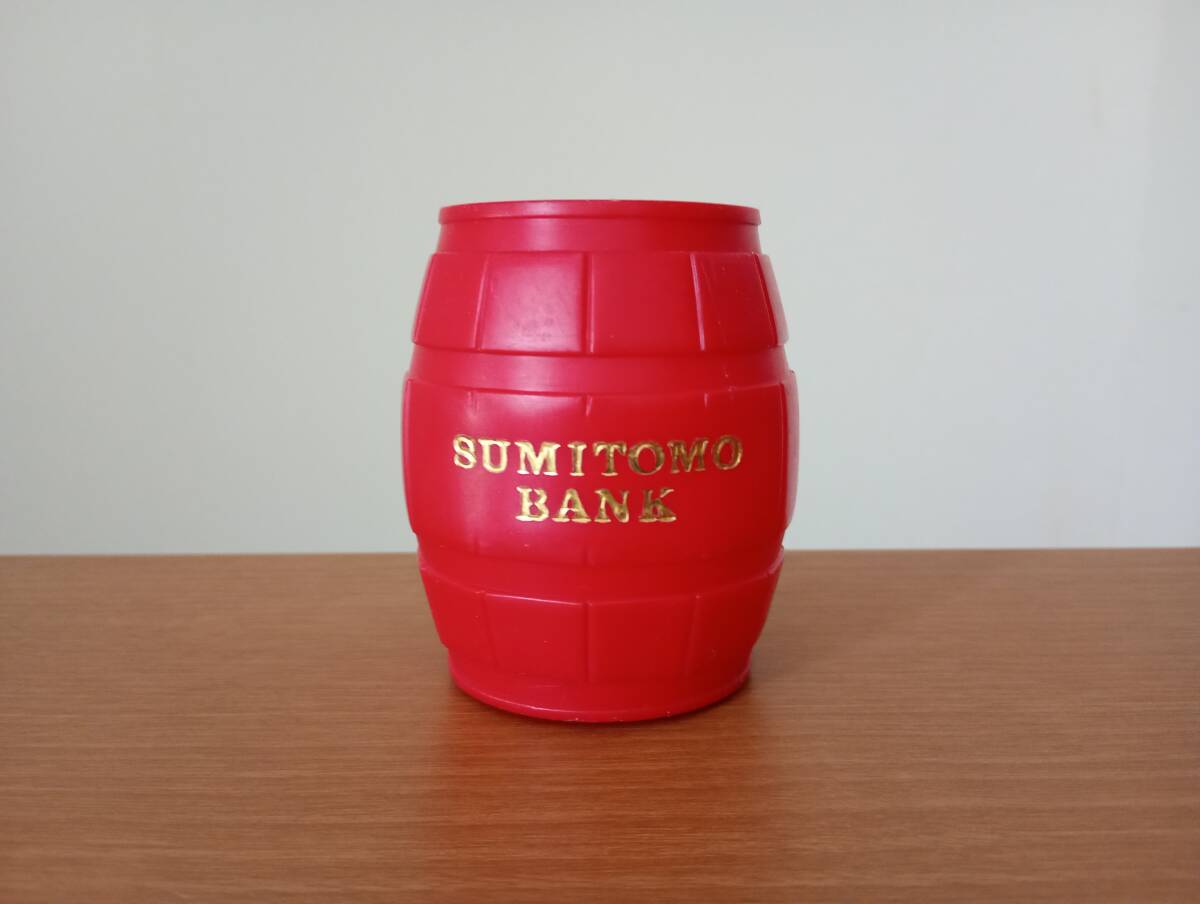 - 昭和レトロ 住友銀行 樽 たる型 バンク 貯金箱 赤 ノベルティ