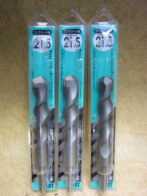 > *送料無料 未使用 サンコーテクノ オールドリル 刃先径21.5mm 有効長100mm コンクリート 軽量ハンマー ハンマードリル用 計3本 ビット 3